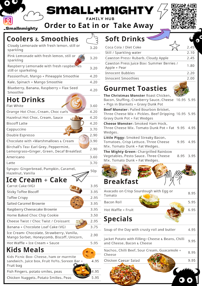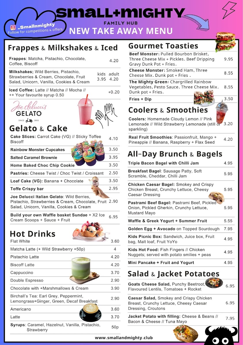 Welcome to the SmallMighty Family Club, a delightful children's café located at 133 High St, Godalming. This inviting space is more than just a café; it's a vibrant playground that combines delicious food with interactive fun for kids. The menu features a variety of hot drinks, including a rich Biscoff Latte and indulgent Hazelnut Hot Chocolate, both perfect for parents seeking a cozy treat. Children can enjoy meals like the irresistible Kids Picnic Box or crispy Chicken Nuggets paired with playful potato smiles.